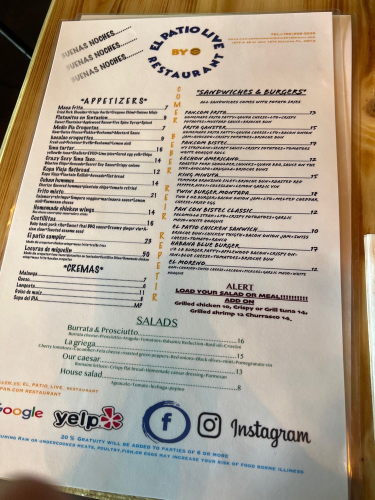 El Patio live Restaurant is a Steakhouses gem located in Hialeah, FL, offering a unique outdoor seating experience. The restaurant's diverse menu caters to every taste, with generous portions that leave customers satisfied. Despite slightly higher prices, patrons keep coming back for the exceptional service, inviting ambiance, and delicious food. Customer reviews praise the overall experience at El Patio, with one mentioning frequent returns due to the incredible value for money. This restaurant truly stands out for offering a well-rounded dining experience that exceeds expectations. For those seeking a memorable meal in Miami, El Patio live Restaurant proves to be a top choice for quality food, great service, and an enjoyable atmosphere.